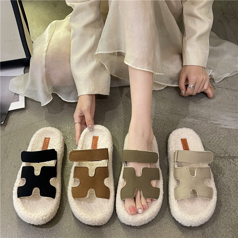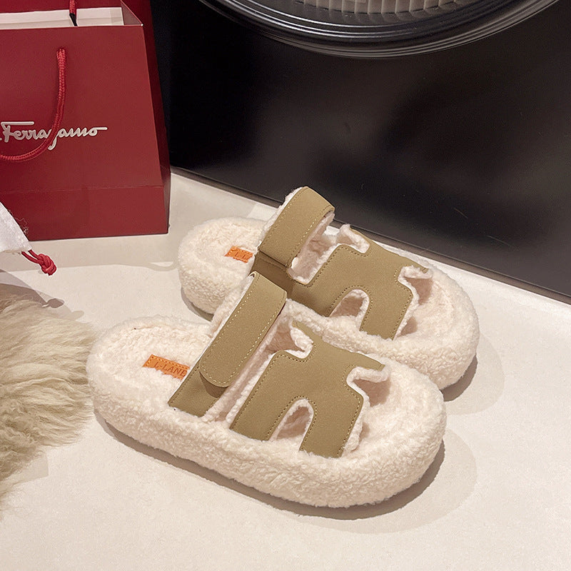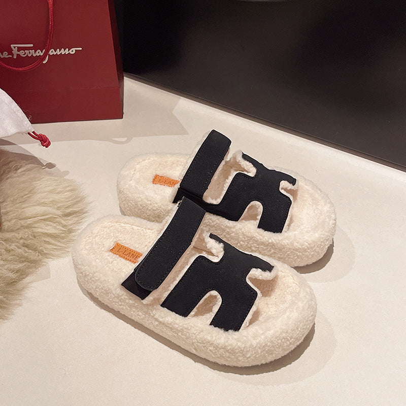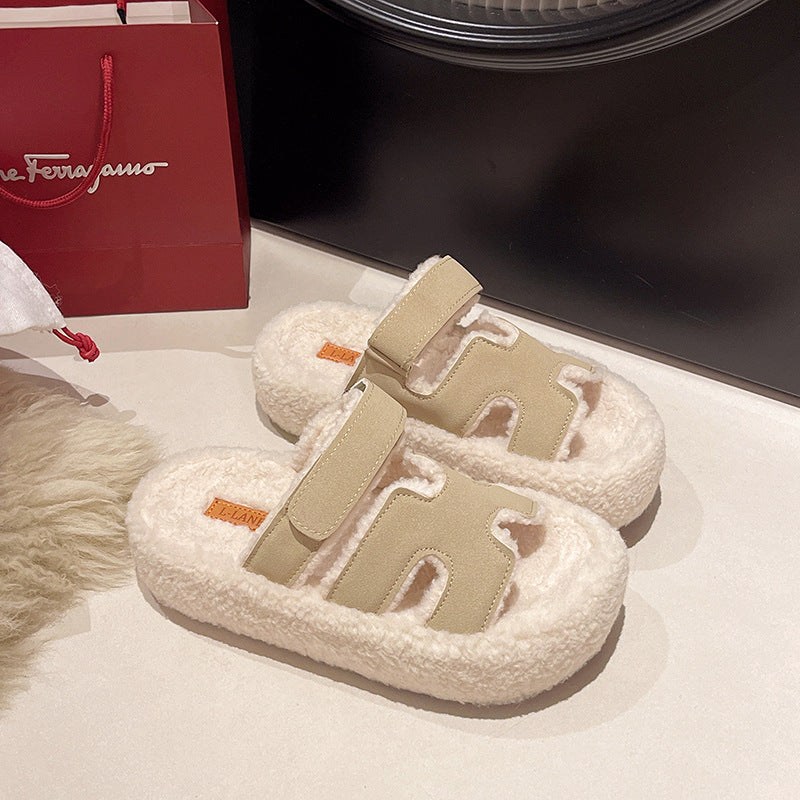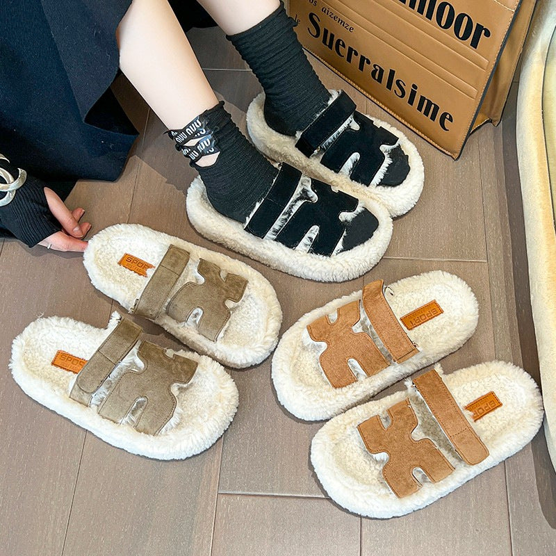 نعال نسائية من الفرو بنعل سميك - مخمل إضافي، غير قابل للانزلاق، ودافئ لفصل الخريف والشتاء، نعال قطنية جديدة
