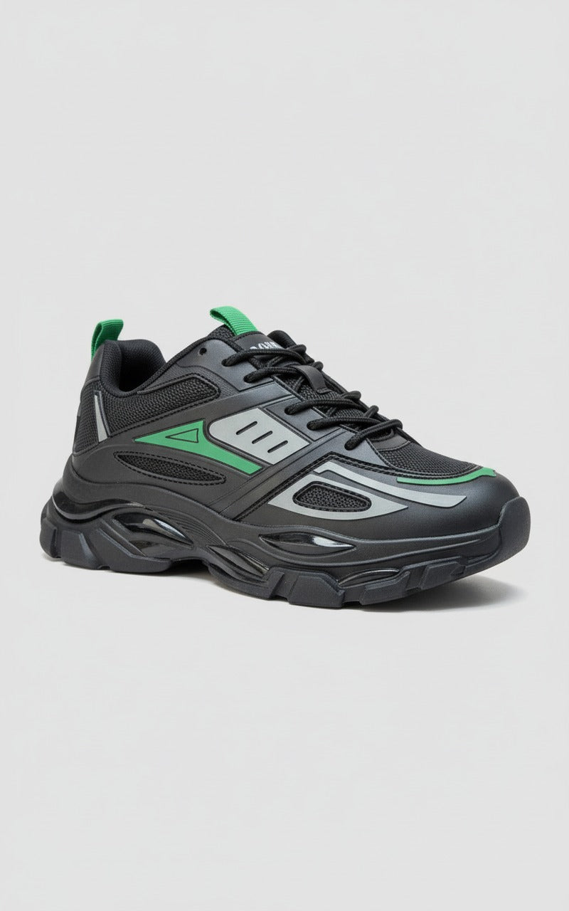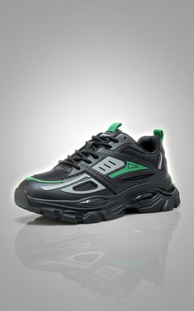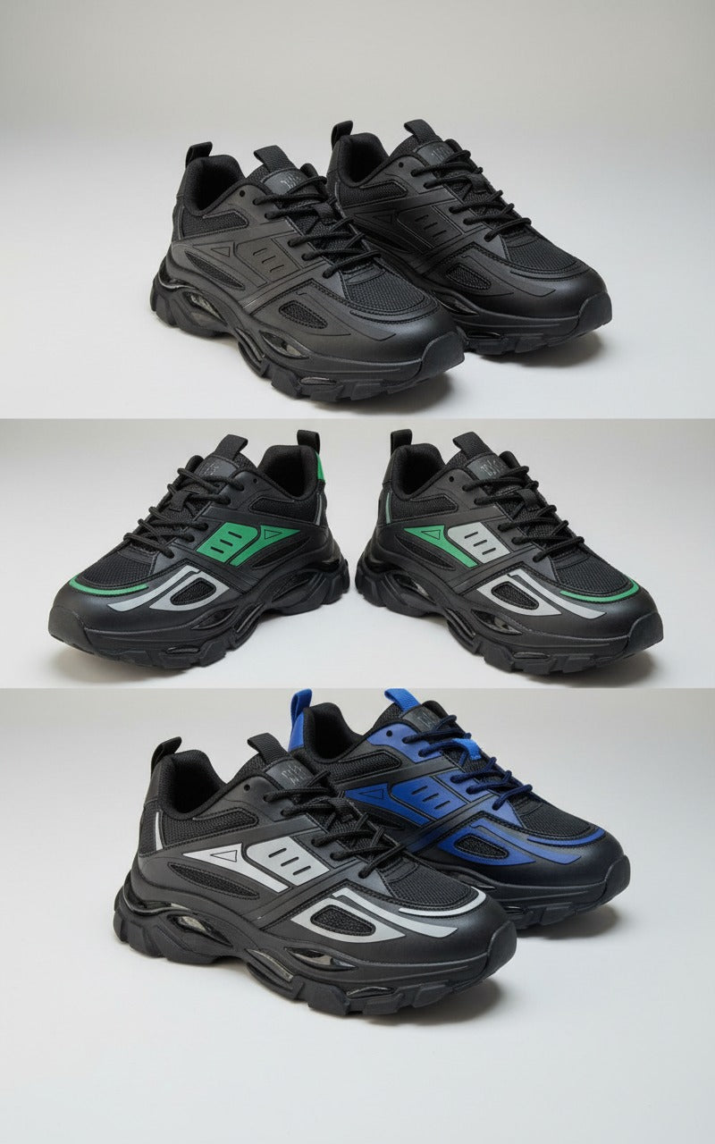 تتوفر هذه الأحذية الرياضية بثلاثة ألوان أنيقة - أسود وأخضر وفضي - بأحجام تتراوح من 40 إلى 44 ، وهي تعيد تعريف الأداء والأناقة اليومية.