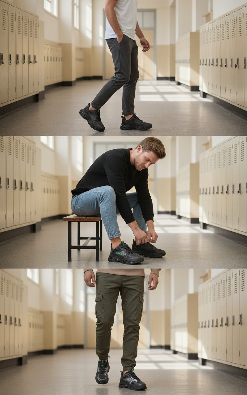 ارتقِ بمظهرك في الشارع مع حذاء رياضي رجالي سميك — مزيج مثالي من التصميم الجريء والمتانة والراحة . مصمم للرجال الذين يتحركون بثقة، يتميز هذا الحذاء الرياضي بنعل خارجي عالي الإمساك وهيكل معزز يوفران ثباتًا ودعمًا في كل خطوة.