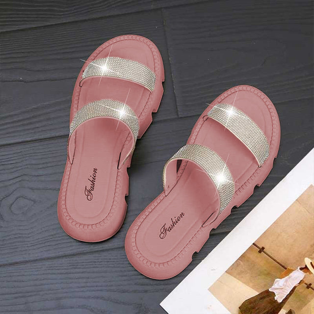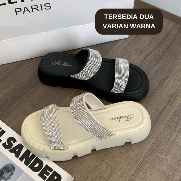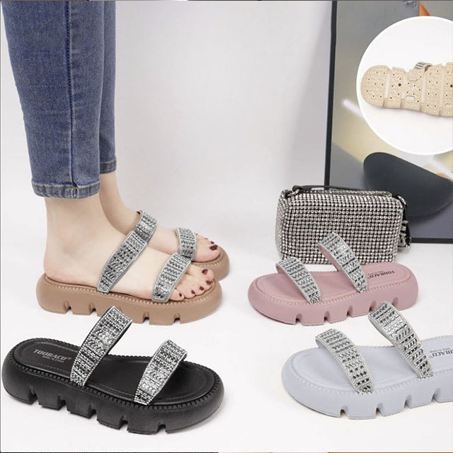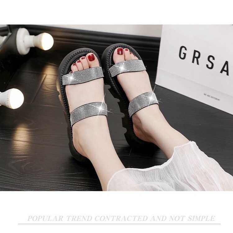 صندل ويدج كريستال للنساء صيف 2024 - نعل سميك مزين بالكريستال
