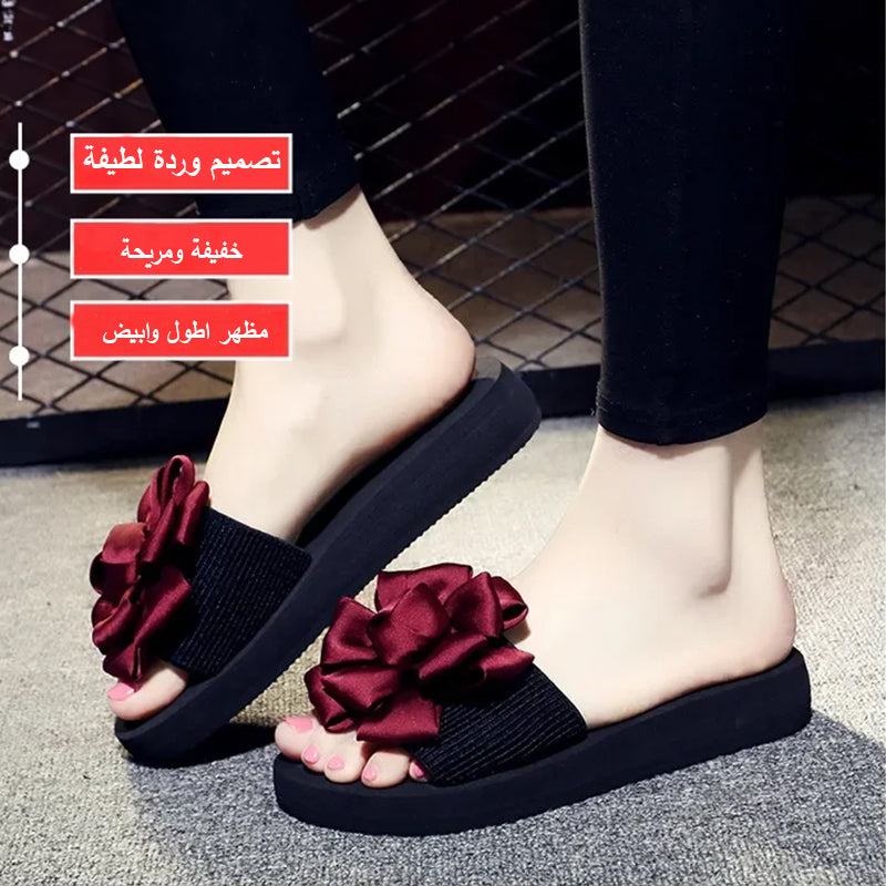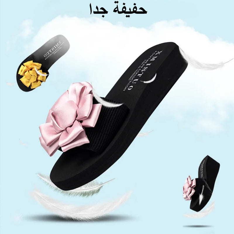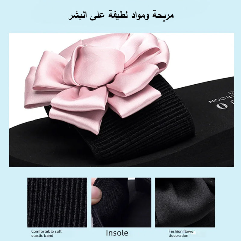 شبشب شاطئ كاجوال للسيدات لعام 2024: صنادل بكعب عريض 3 سم مع زهرة كبيرة