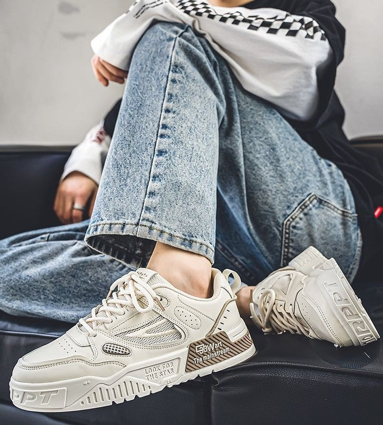 ارتقِ بأسلوبك في الشارع - حذاء رياضي أبيض سميك للرجال من مجموعة 2025
