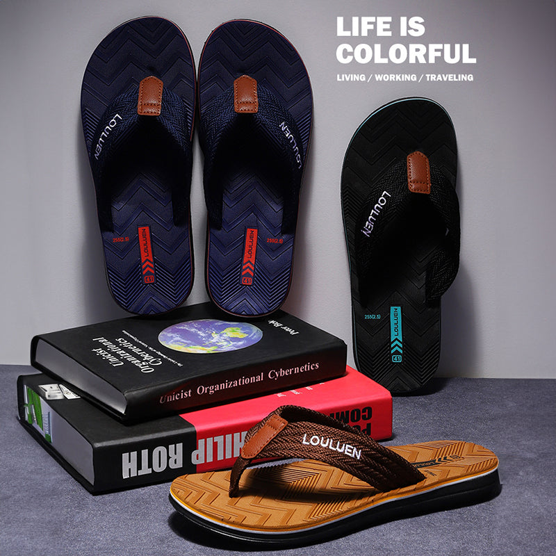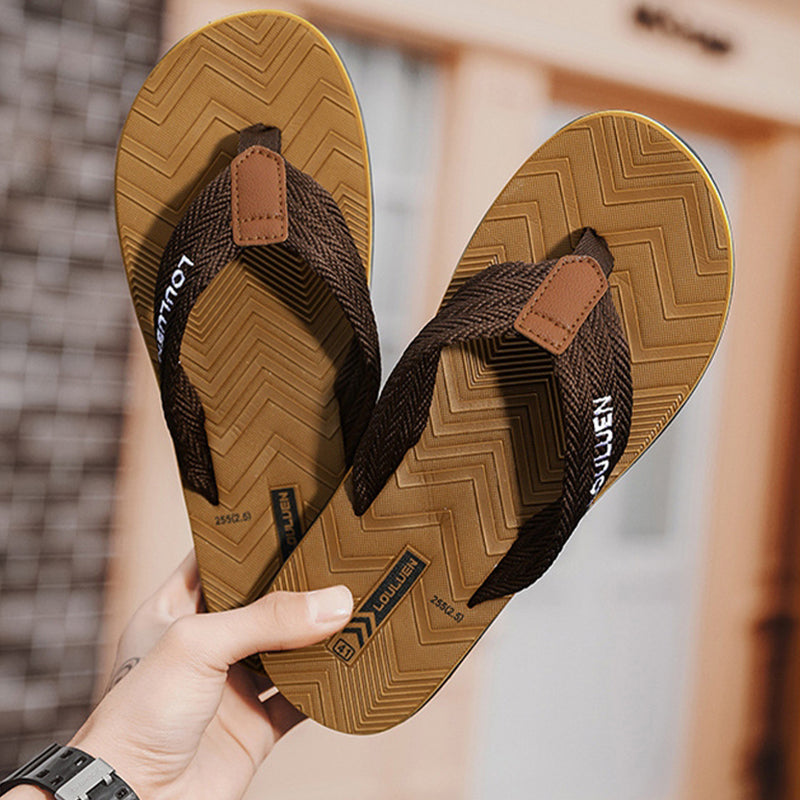شبشب رجالي مع جزء علوي من القماش، صنادل كاجوال مضادة للانزلاق للمشي في الداخل والخارج