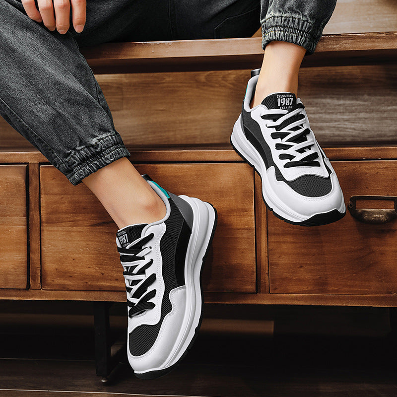 أحذية رياضية عصرية للشباب من الجلد : أحذية برباط ذات نعل سميك