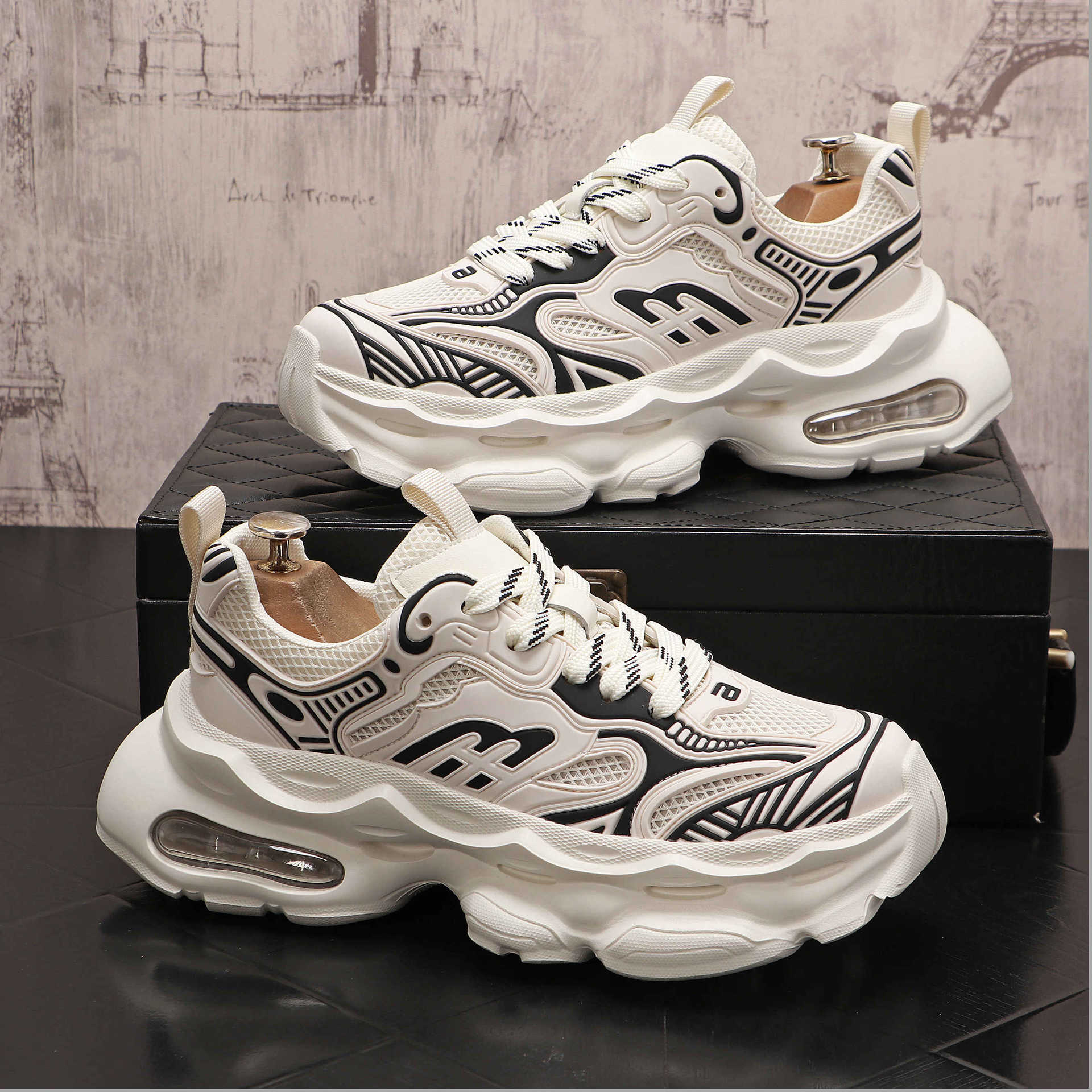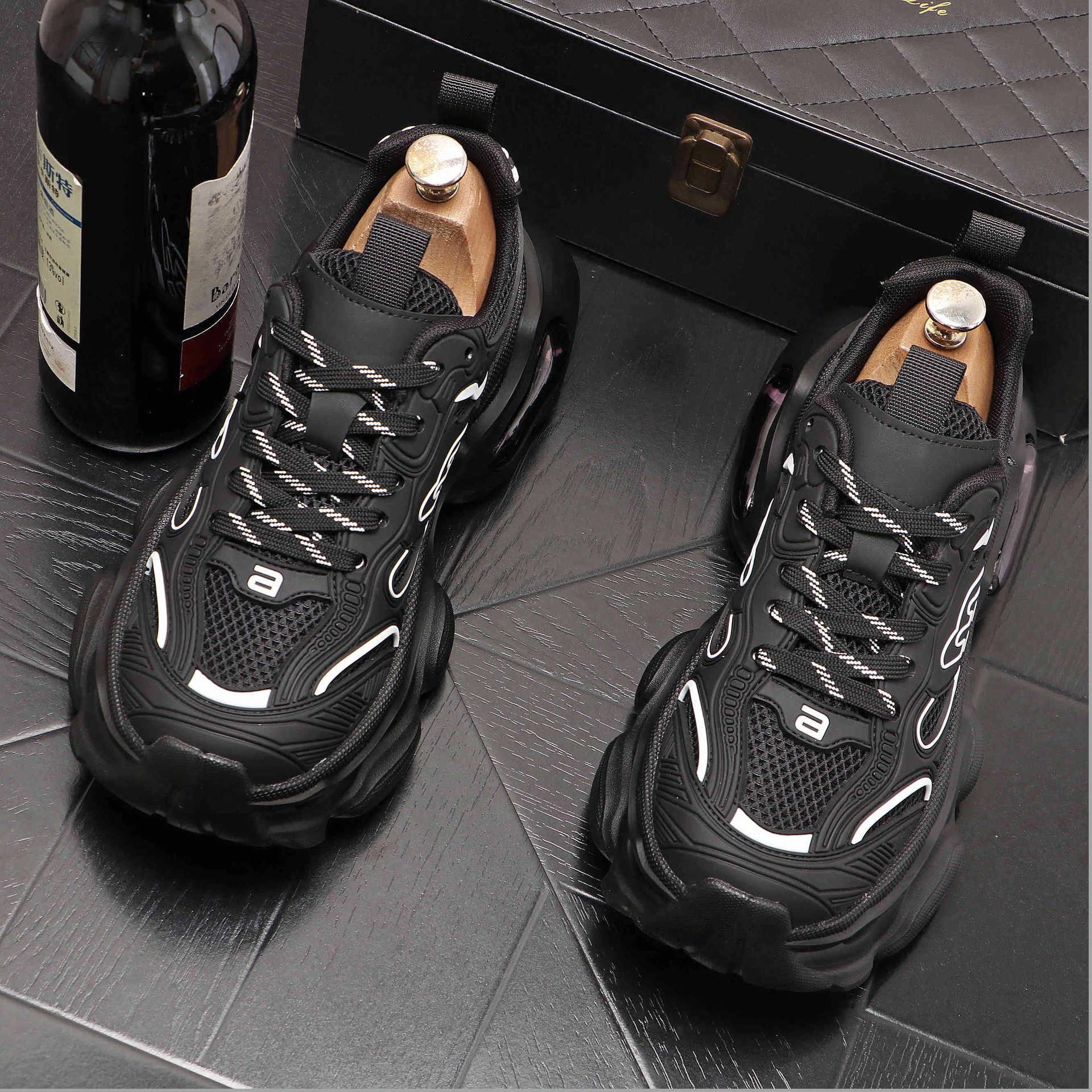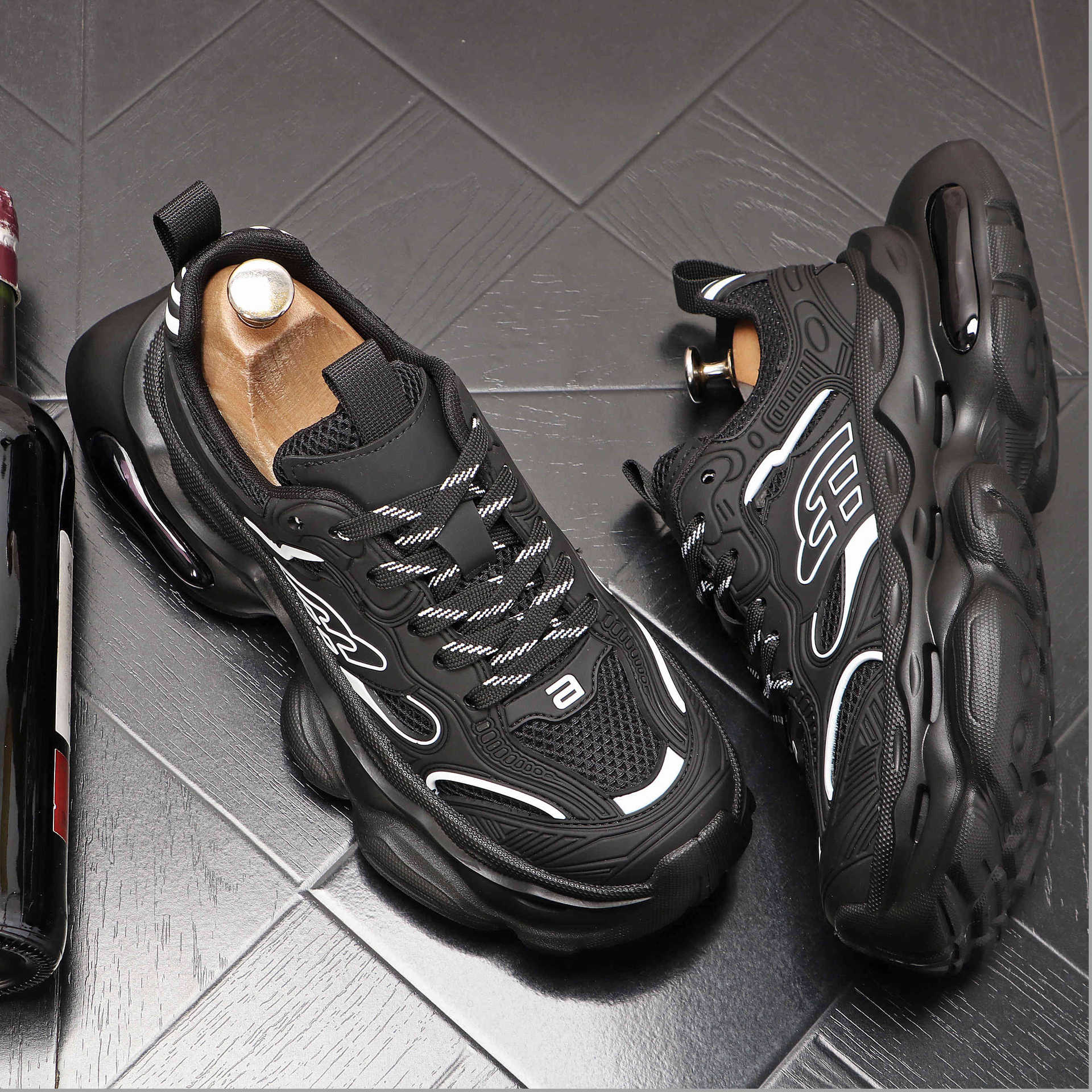 ارتقِ بأسلوبك مع هذه الأحذية الرياضية الرجالية الفاخرة، المصممة للأداء والأناقة. تتميز هذه الأحذية الرياضية بتصميم فاخر ومستقبلي، وتوفر نعلًا سميكًا مع وسادة هوائية لأقصى قدر من الراحة والدعم. يضمن الجزء العلوي الشبكي القابل للتنفس التهوية، بينما توفر المواد المتينة عالية الجودة ارتداءً يدوم طويلاً.
