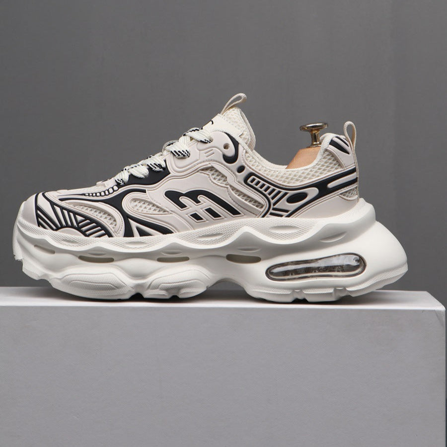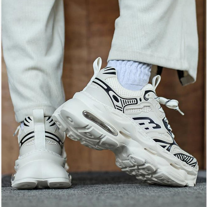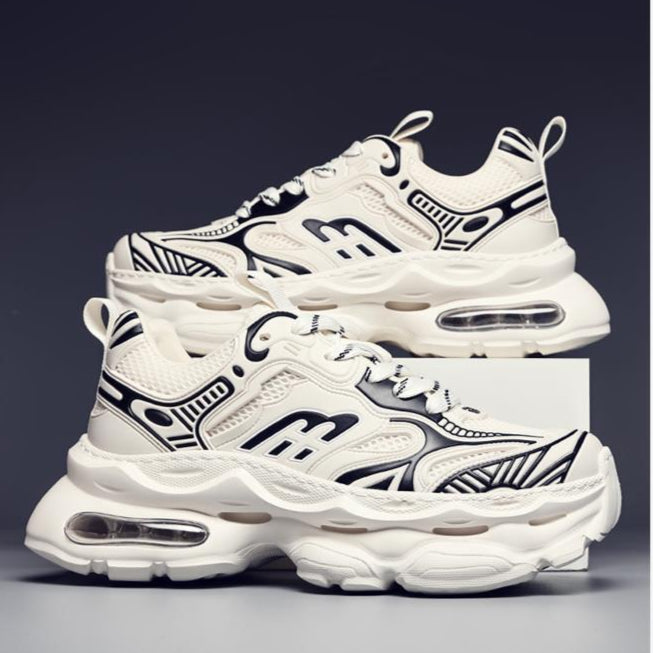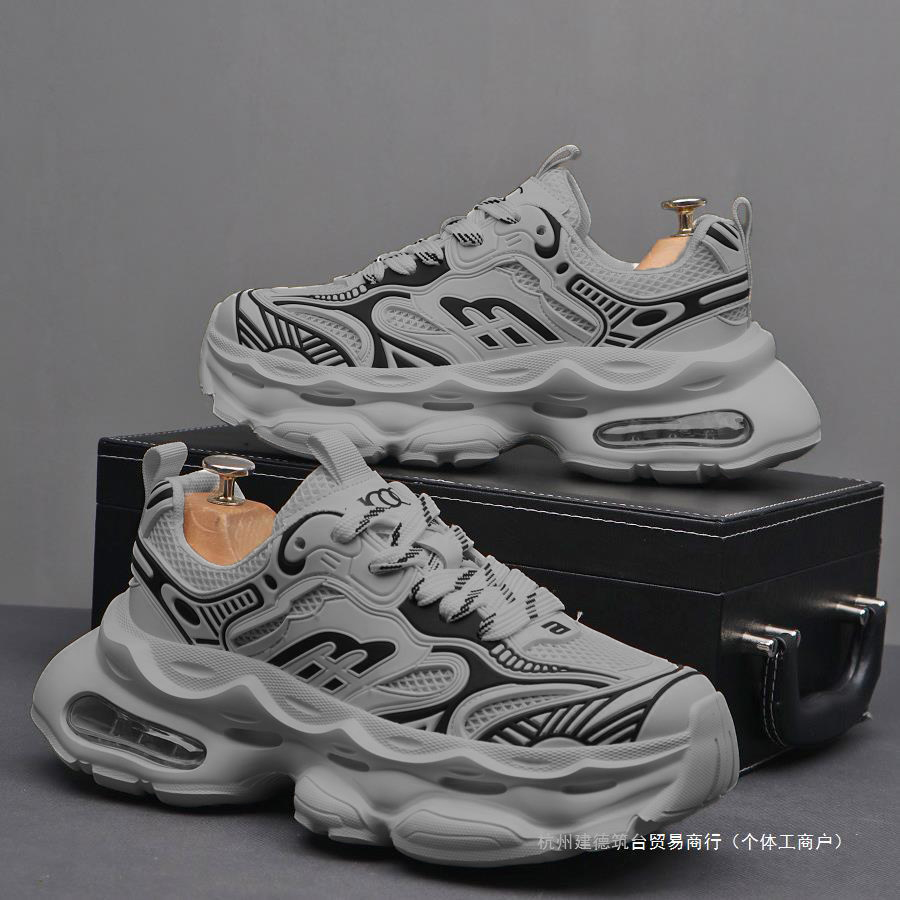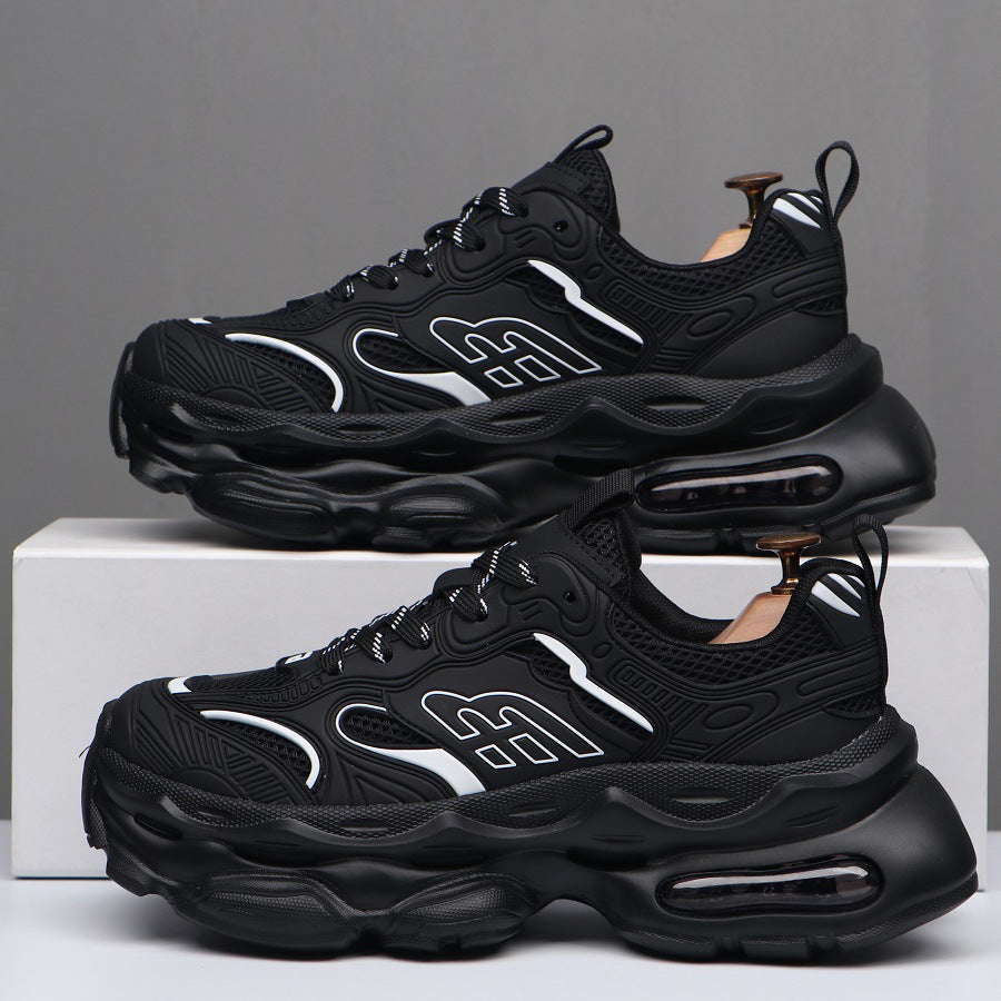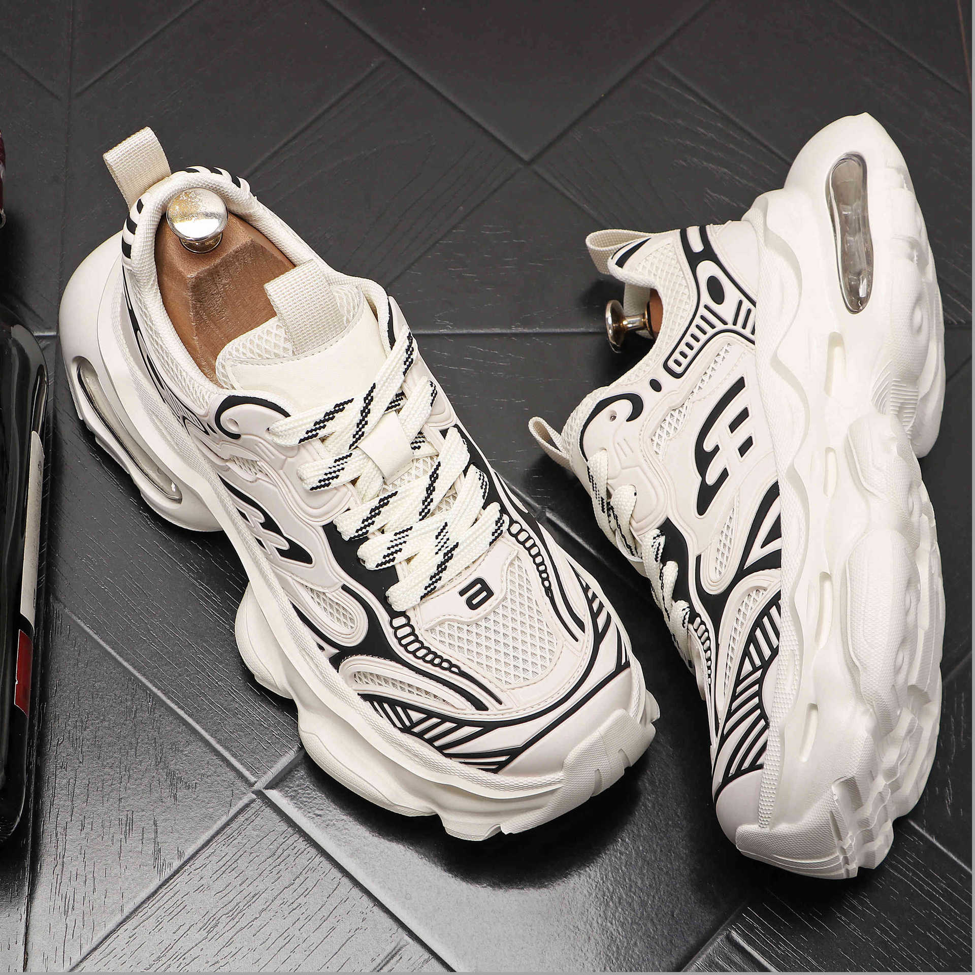 ارتقِ بأسلوبك مع هذه الأحذية الرياضية الرجالية الفاخرة، المصممة للأداء والأناقة. تتميز هذه الأحذية الرياضية بتصميم فاخر ومستقبلي، وتوفر نعلًا سميكًا مع وسادة هوائية لأقصى قدر من الراحة والدعم. يضمن الجزء العلوي الشبكي القابل للتنفس التهوية، بينما توفر المواد المتينة عالية الجودة ارتداءً يدوم طويلاً.