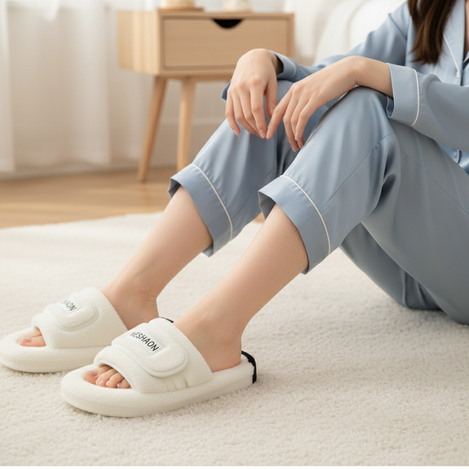 تمنح شبشب المنزل النسائي ذو الشريط المخملي الراحة الفورية والمستمرة للأقدام على الأرضيات الباردة - دفء مخملي، وأمان الشريط العريض، ونعل داخلي مبطن لخطوات مريحة في المنزل.