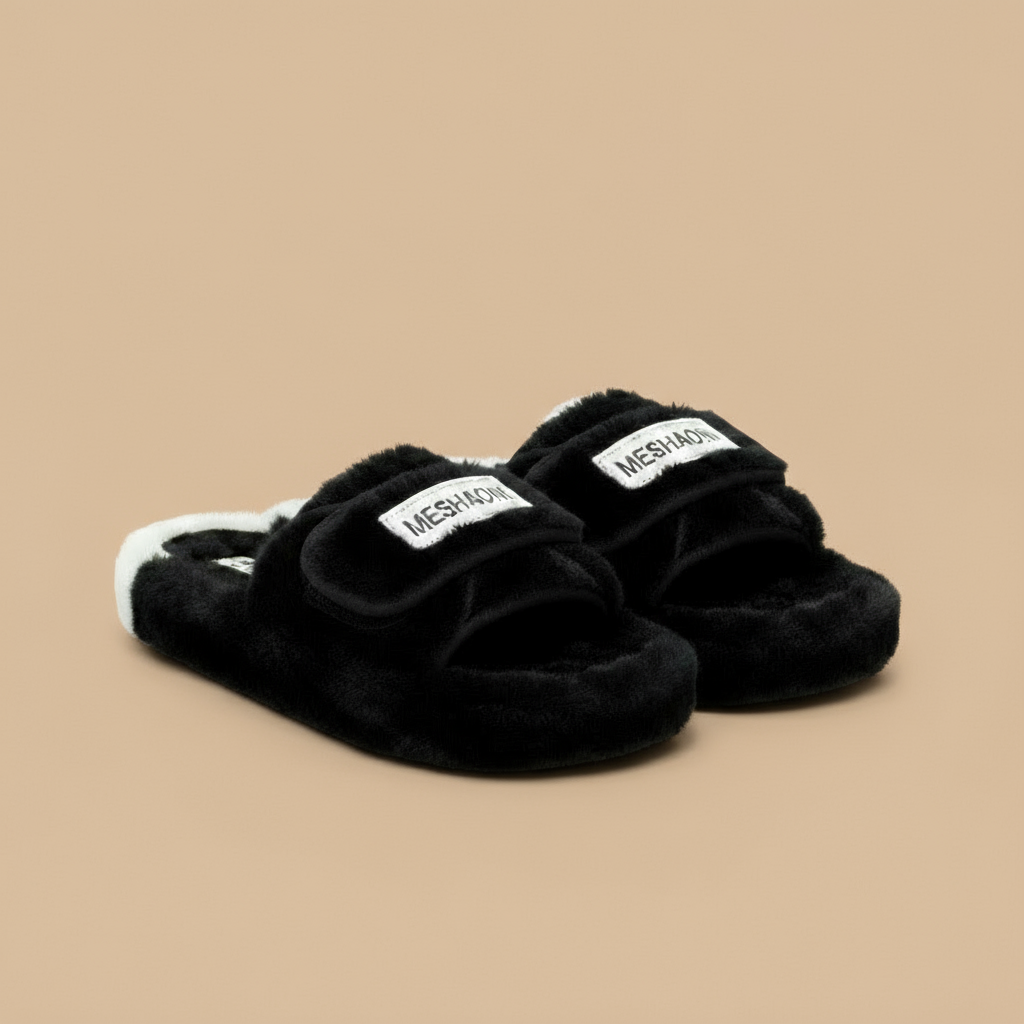 أحذية منزلية نسائية ناعمة مع أشرطة - دافئة، ومريحة مع أشرطة عريضة