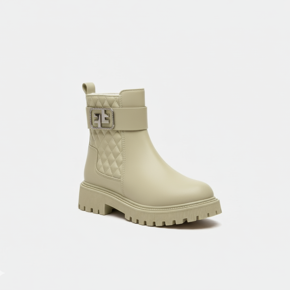 حذاء كاحل من الجلد المبطن مع تفاصيل إبزيم