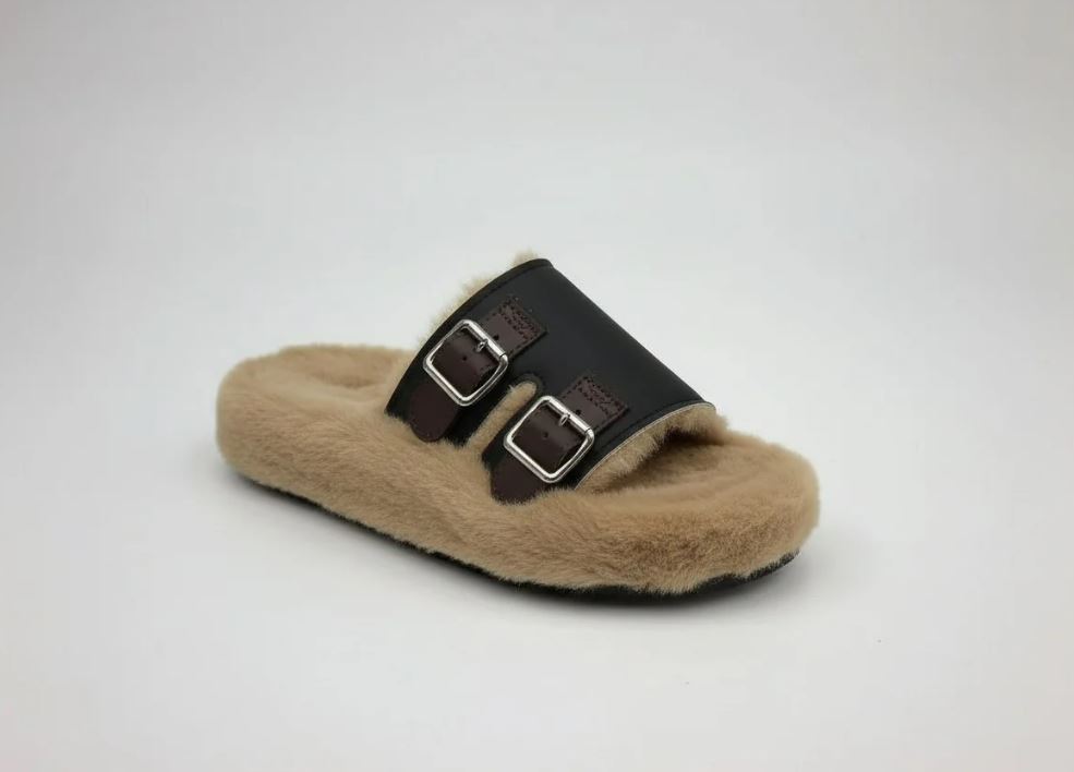 اختبري أناقةً مريحةً مع شبشبنا النسائي ذو الكعب السميك المُزين بإبزيم ، المصمم ليوفر الراحة والدفء والأناقة بسهولة. يُعد هذا الشبشب مثاليًا للاسترخاء في المنزل أو الارتداء الخارجي غير الرسمي، وهو مصنوع من بطانة داخلية فاخرة من الفرو الصناعي التي تحافظ على دفء قدميكِ خلال أيام الخريف والشتاء الباردة.