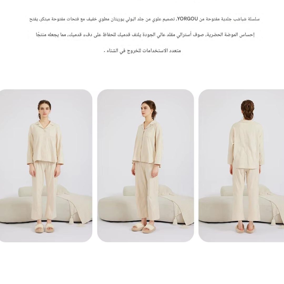 حافظي على الدفء والأناقة هذا الشتاء مع نعالنا الشتوية الدافئة للسيدات. تتميز هذه النعال بقماش جلدي فاخر وتصميم مبطن أنيق، وتجمع بين الأناقة والعملية. تضمن البطانة الناعمة المريحة أقصى درجات الدفء والراحة، مما يجعلها مثالية للأيام الباردة في المنزل أو في المكتب. صُممت بنعل خارجي مضاد للانزلاق، مما يوفر الثبات والأمان على الأسطح المختلفة. دلل قدميك بأقصى درجات الراحة والأناقة العصرية هذا الموسم.