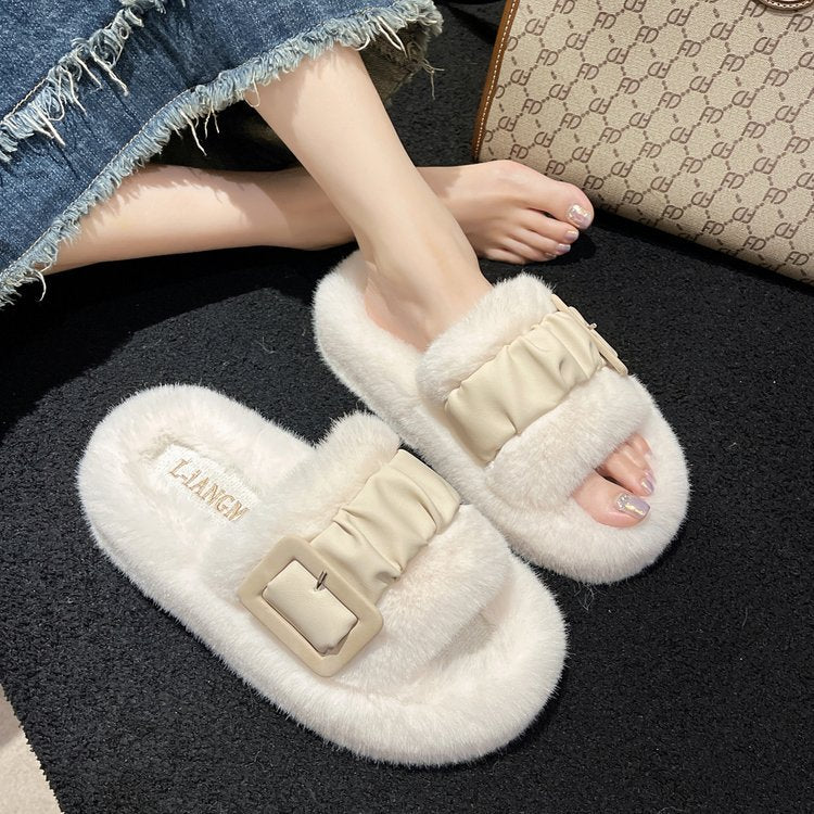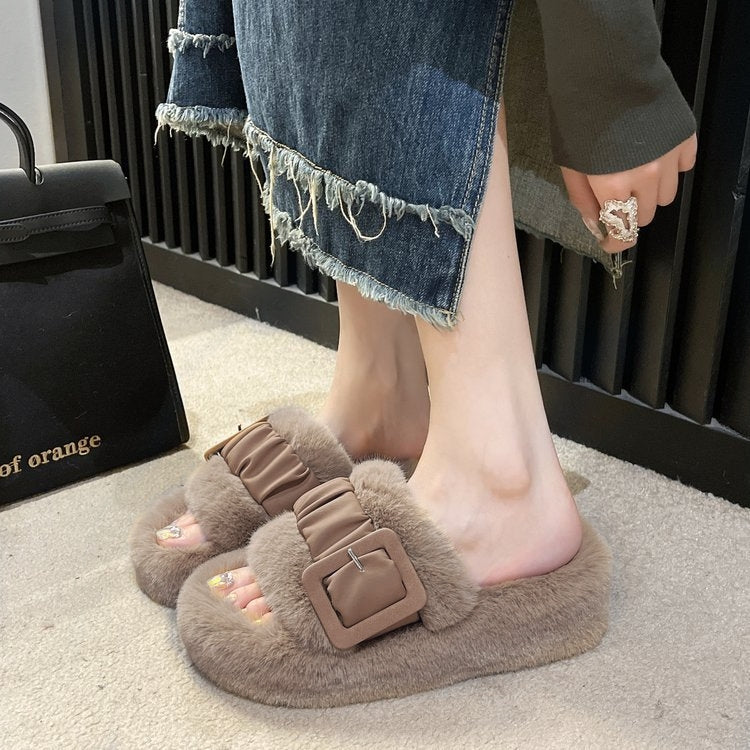 نعال نسائية من الفرو بقاع سميك لخريف وشتاء 2024 - أحذية داخلية عصرية تناسب جميع الأذواق