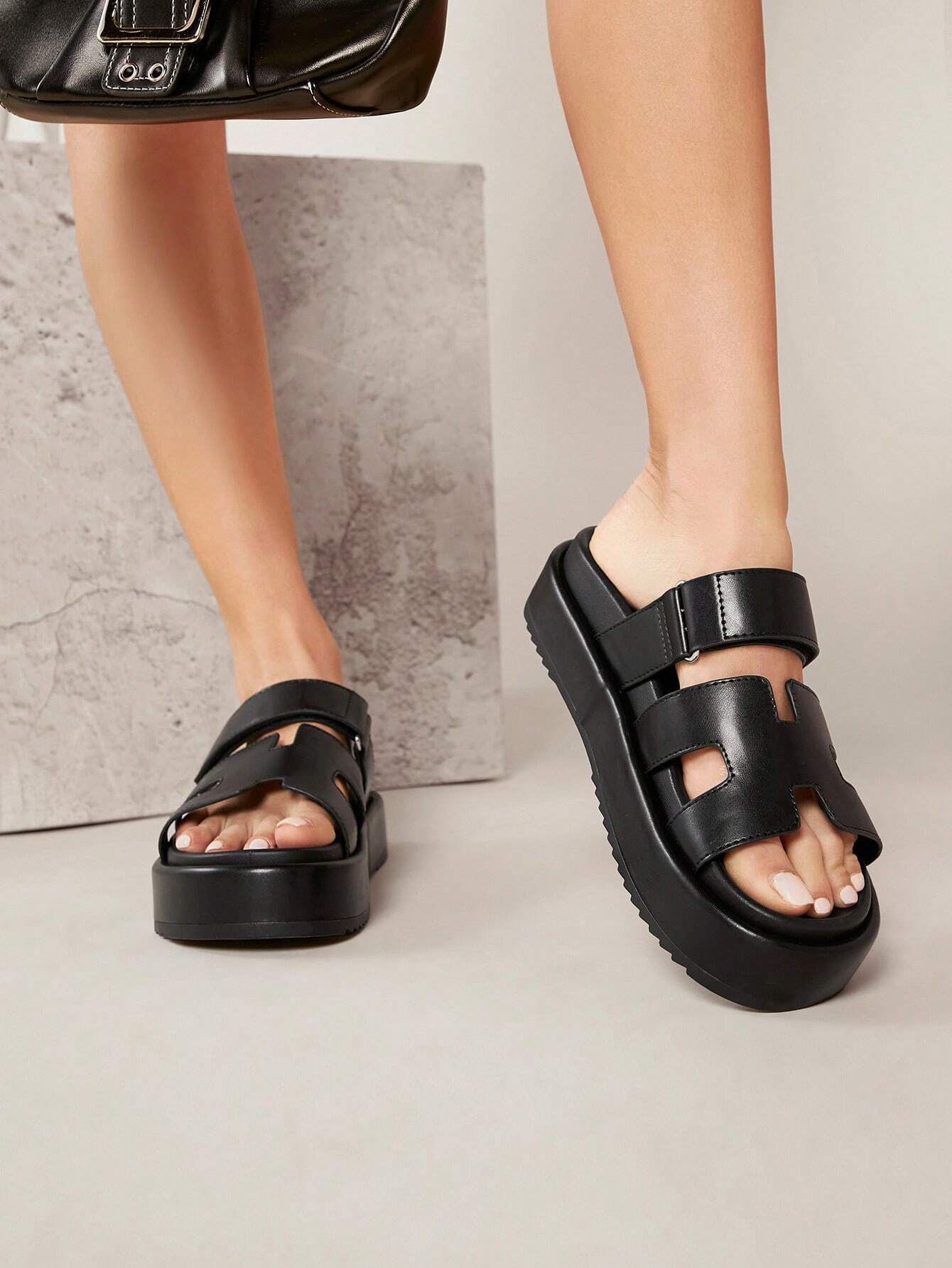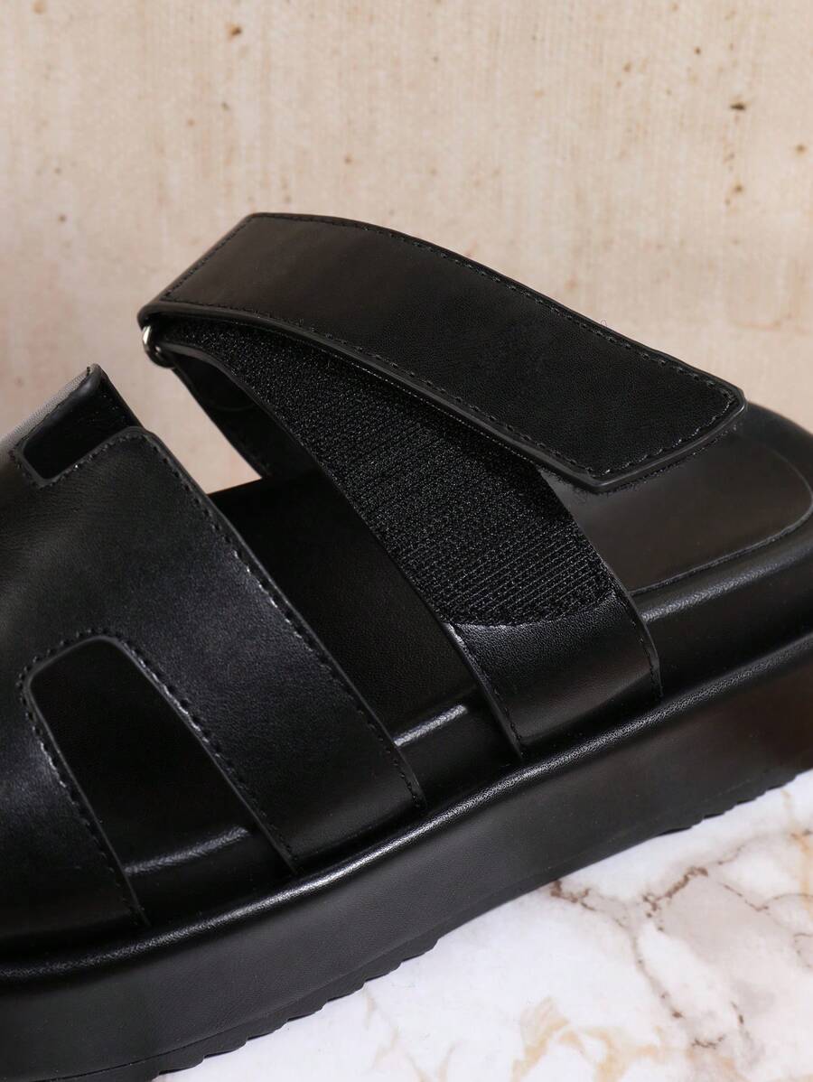 استمتع بالأناقة السهلة مع صُممت هذه الصنادل ذات النعل السميك الفاخر لتضفي لمسة من الأناقة على إطلالتك وترفع من مستوى أناقتك في كل خطوة. صُنعت هذه الصنادل بنعل سماوي جريء من مادة البولي يوريثان وفتحات هندسية مستوحاة من الفخامة، وتمزج بين التصميم الجريء والرقي الخالد. يضمن حزام الإبزيم القابل للتعديل ملاءمة آمنة ومخصصة، بينما يضمن النعل الداخلي المبطن الراحة طوال اليوم.