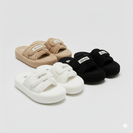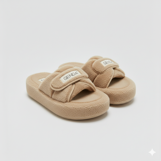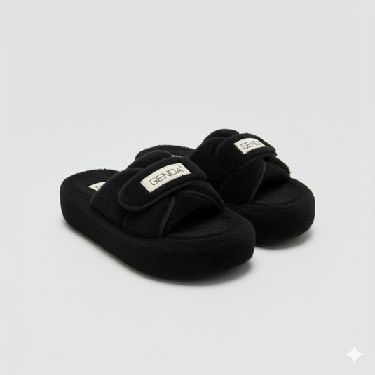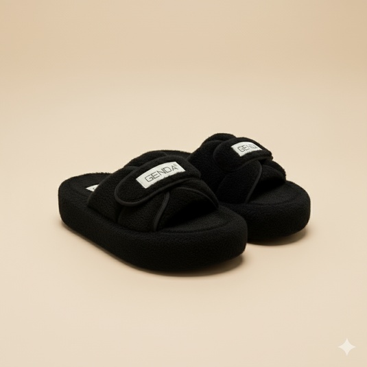 Our women’s fuzzy closed‑toe slippers warm your feet fast and the adjustable strap keeps them on—no more heel slip.