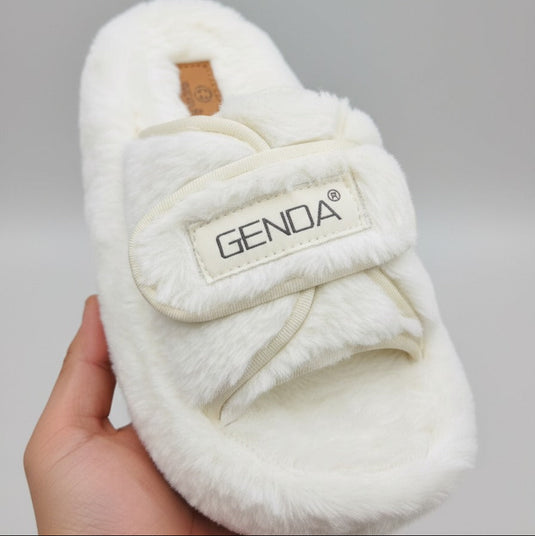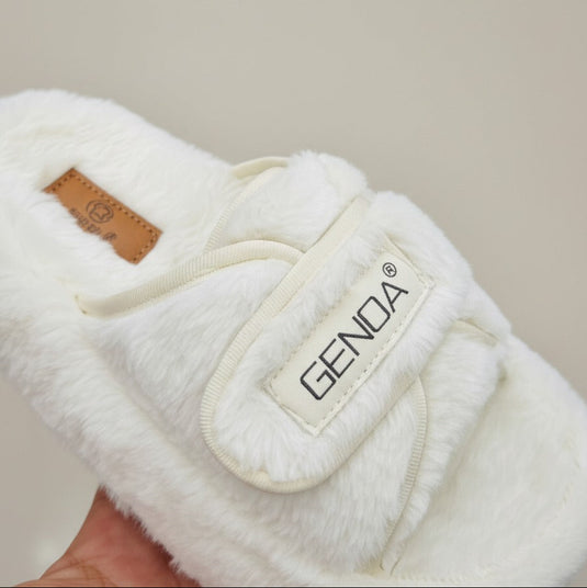 Women’s Fuzzy Closed-Toe Slippers — Warm Toes, Stay-On Strap